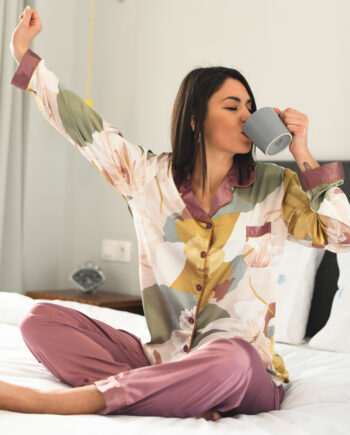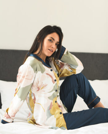 Set Πυτζάμες Με Μακρύ Παντελόνι Σατέν | Πετρόλ