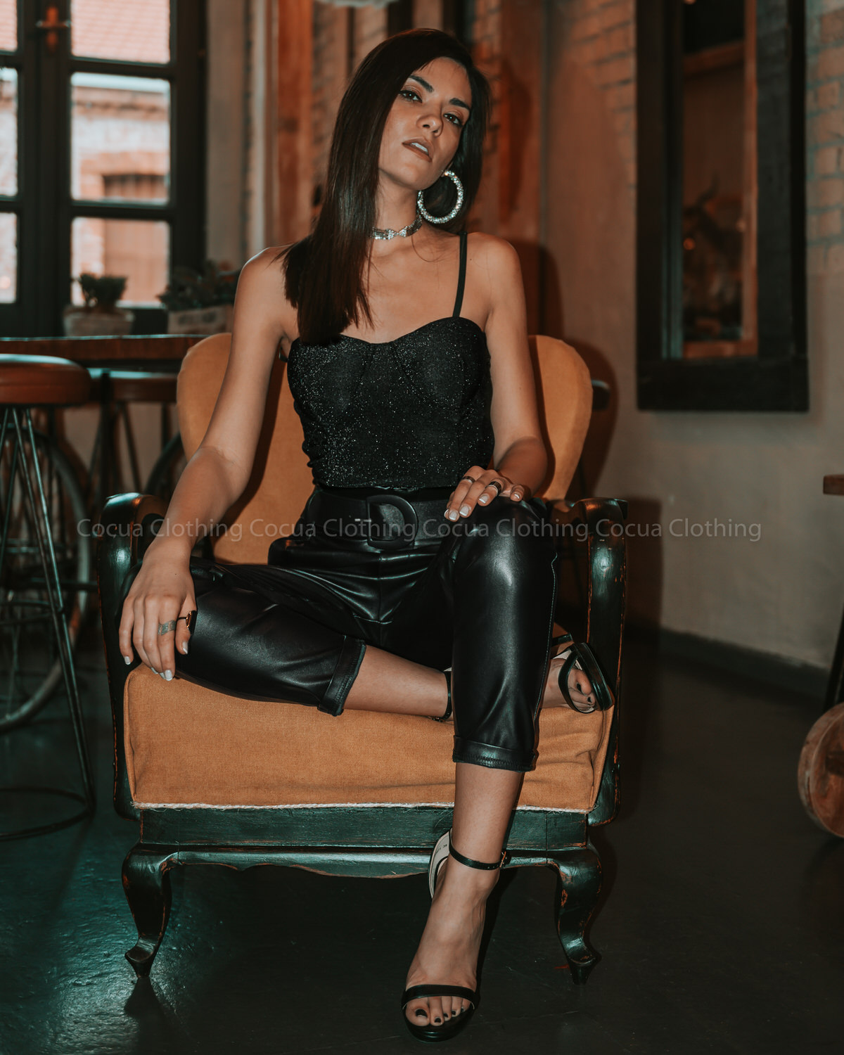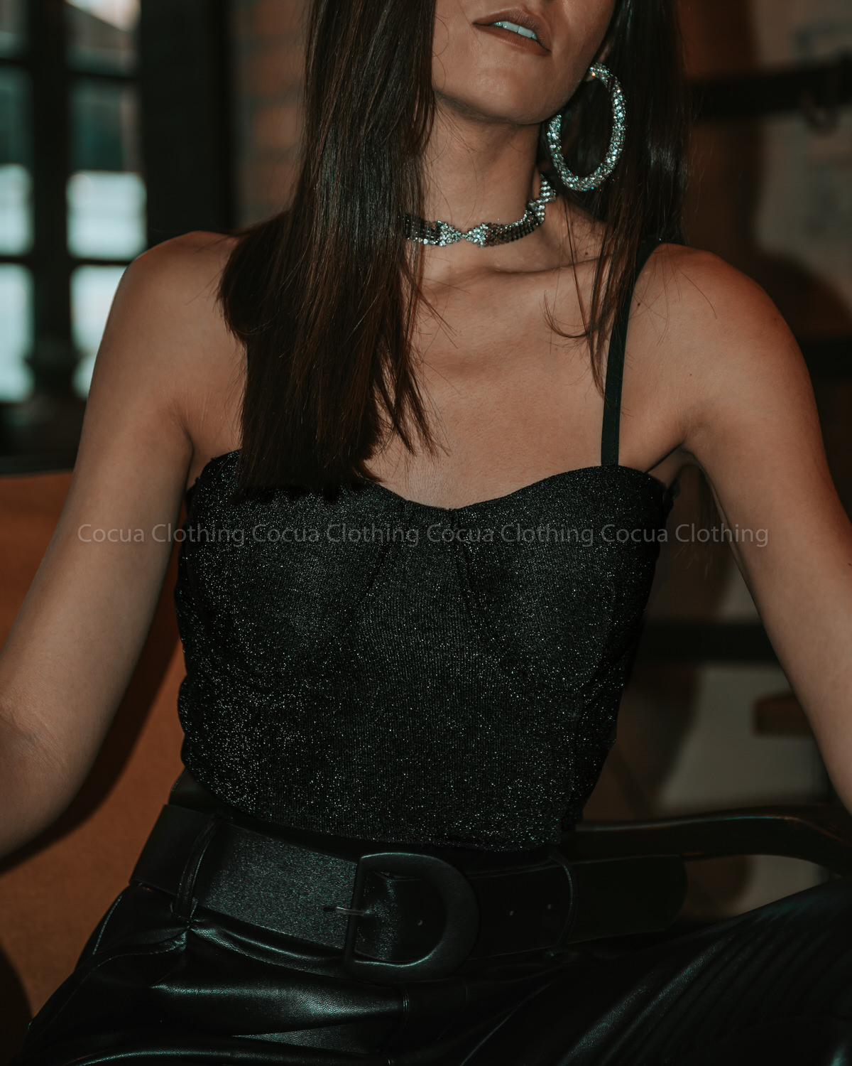 Crop Top Με Ασημί Κλωστή | Μαύρο