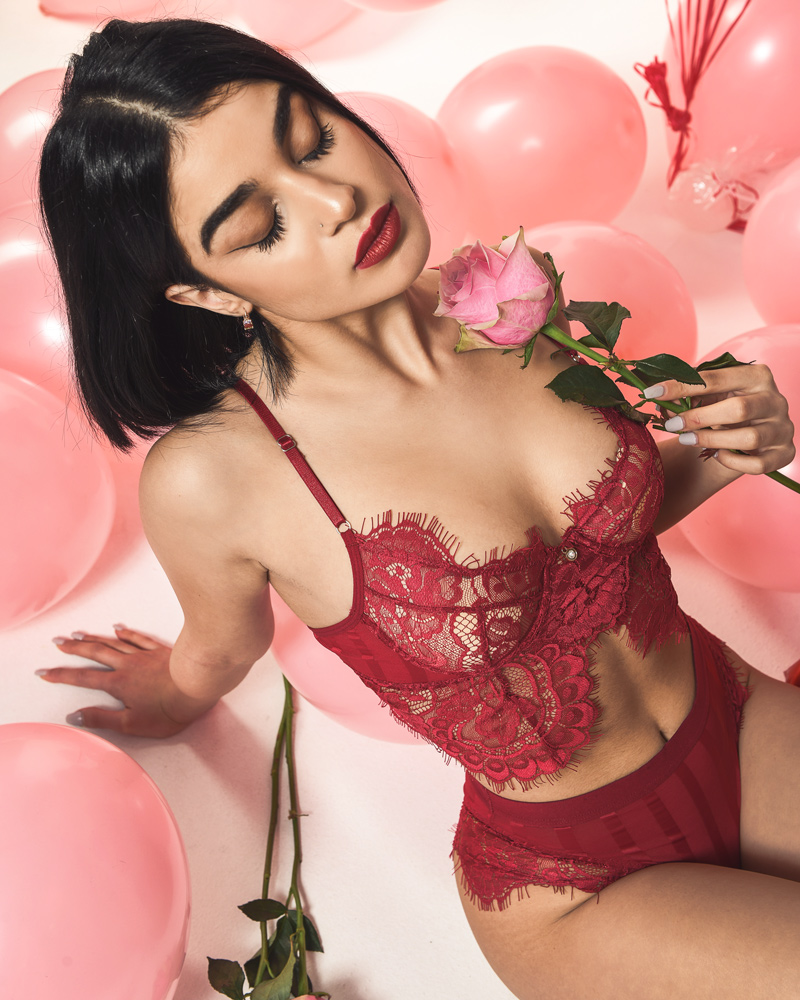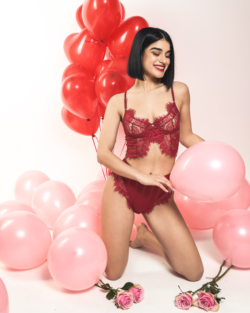 Set Εσώρουχα Με Διαφάνεια & Δαντέλα, Ψηλόμεσο | Mπορντό