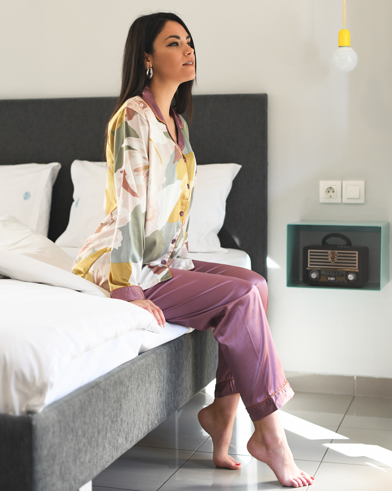 Set Πυτζάμες Με Μακρύ Παντελόνι Σατέν | Ροζ Σκούρο